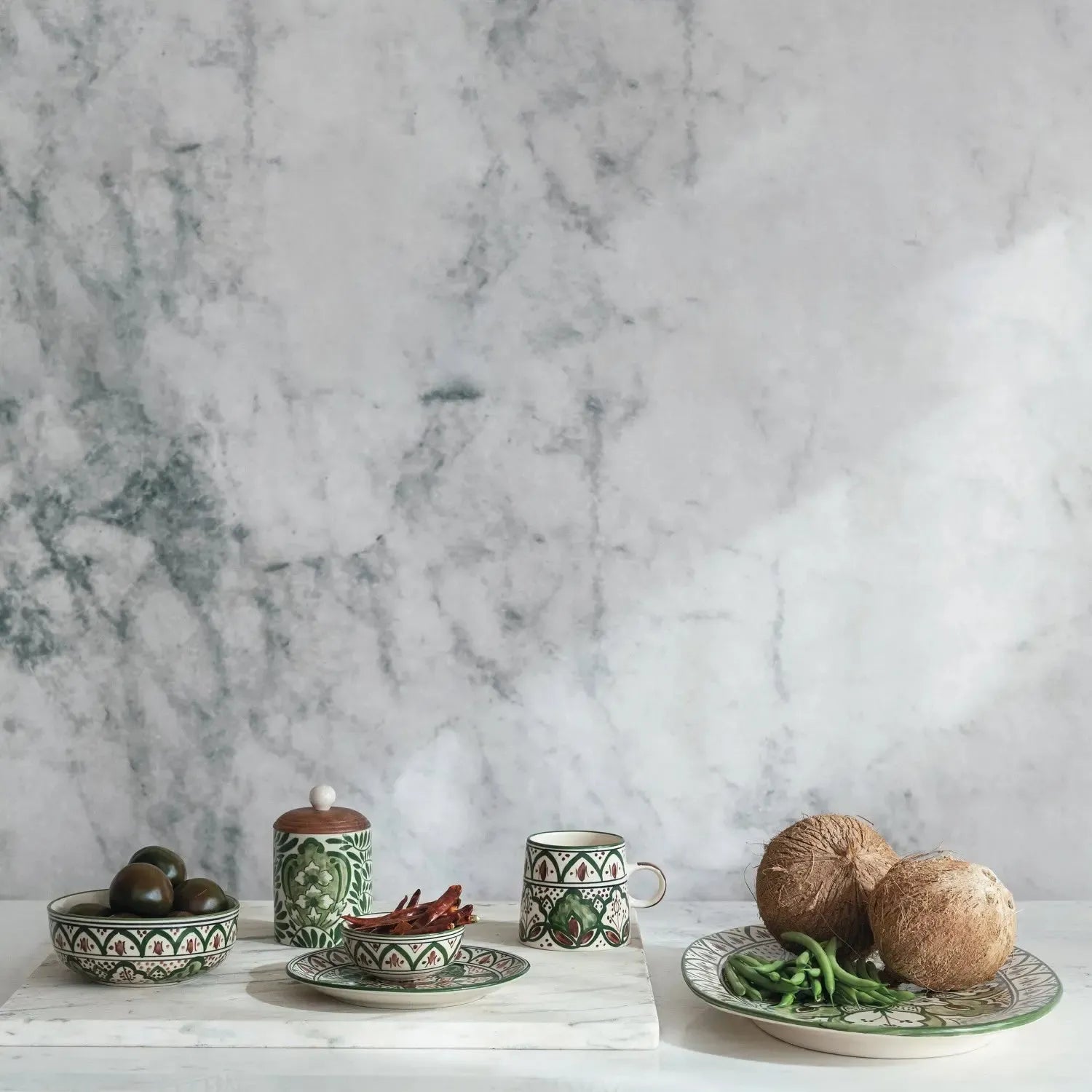 6" Round x 2-1/4"H Hand-Painted Stoneware Bowl w/ Design, Cream Color, Brown & Green