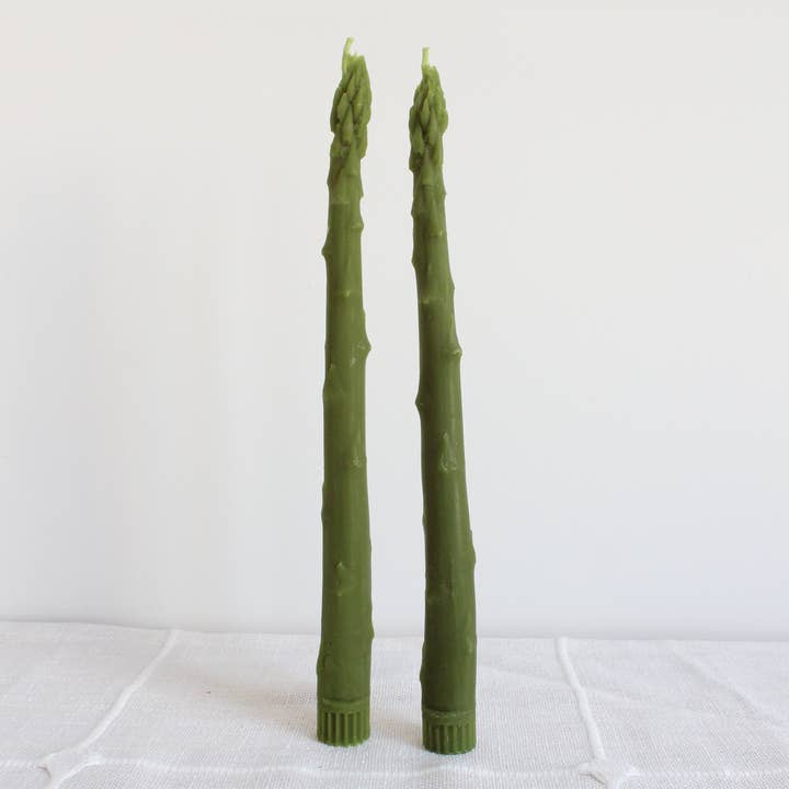 Handcrafted from 100% beeswax and molded from real asparagus stalks, this elegant candle set brings a playful yet refined touch to any shelf. Each stalk is a celebration of our family’s farming and beekeeping legacy—made using produce sourced directly from our farm, local markets, or grocery store finds.