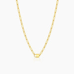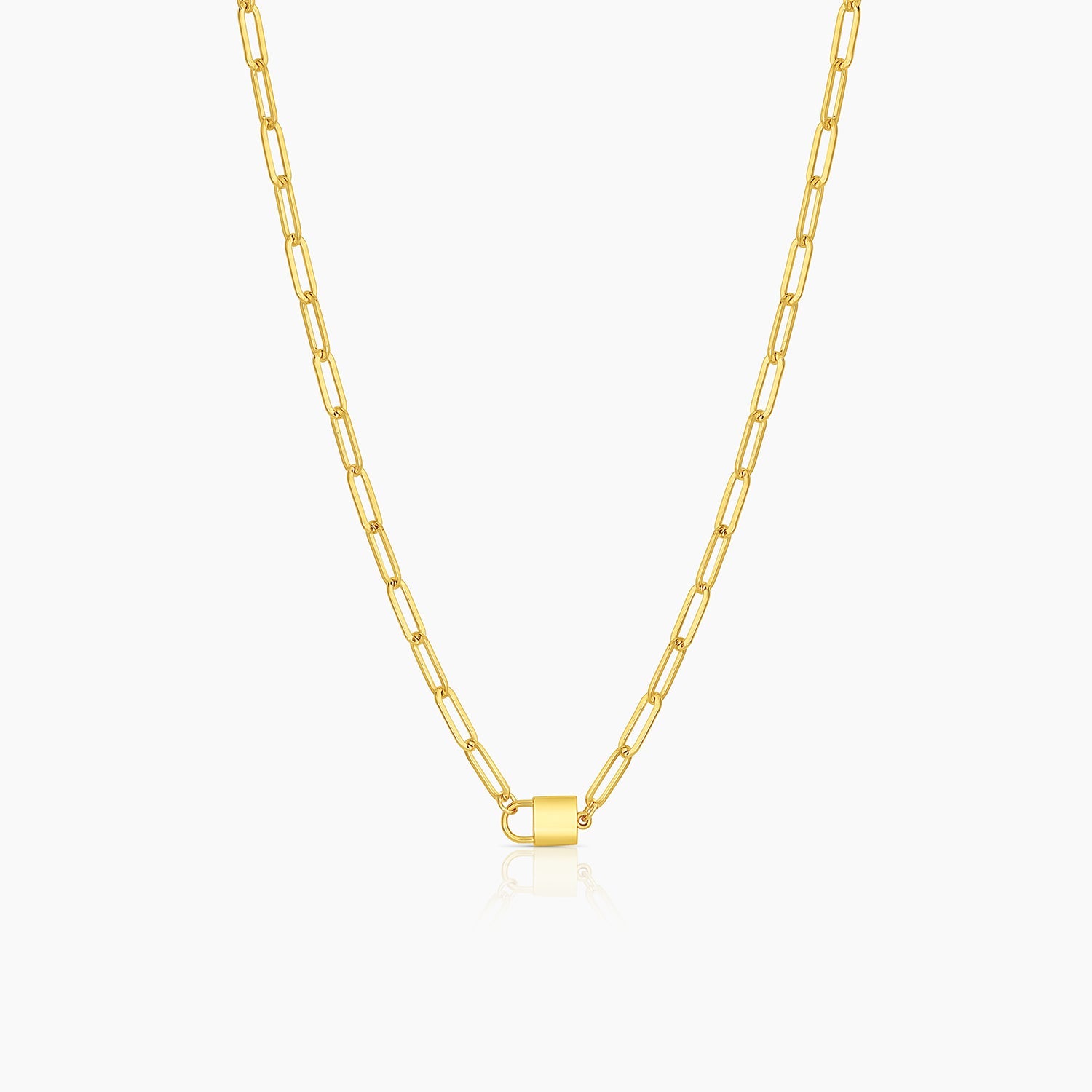 14k gold plated lock charm on 3.4mm medium elongated Finn chain. Fully adjustable up to 16" in total length.