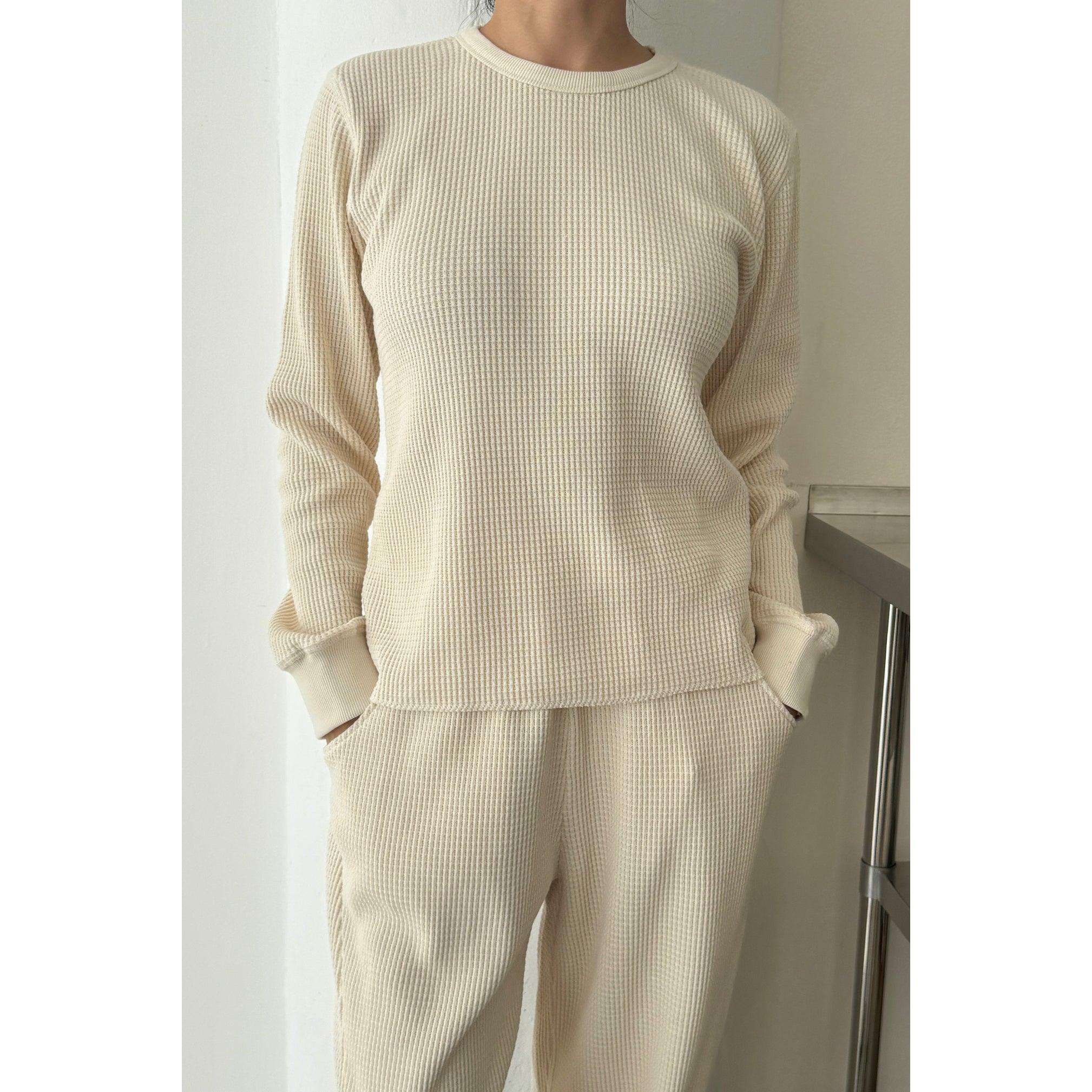 The Waffle Fundamental Tee is crafted from a new heavyweight waffle cotton blend with beautiful structure and softness. A classic long-sleeve crew with baby ribbed cuffs and a close, easy fit designed for layering, lounging, and living in.