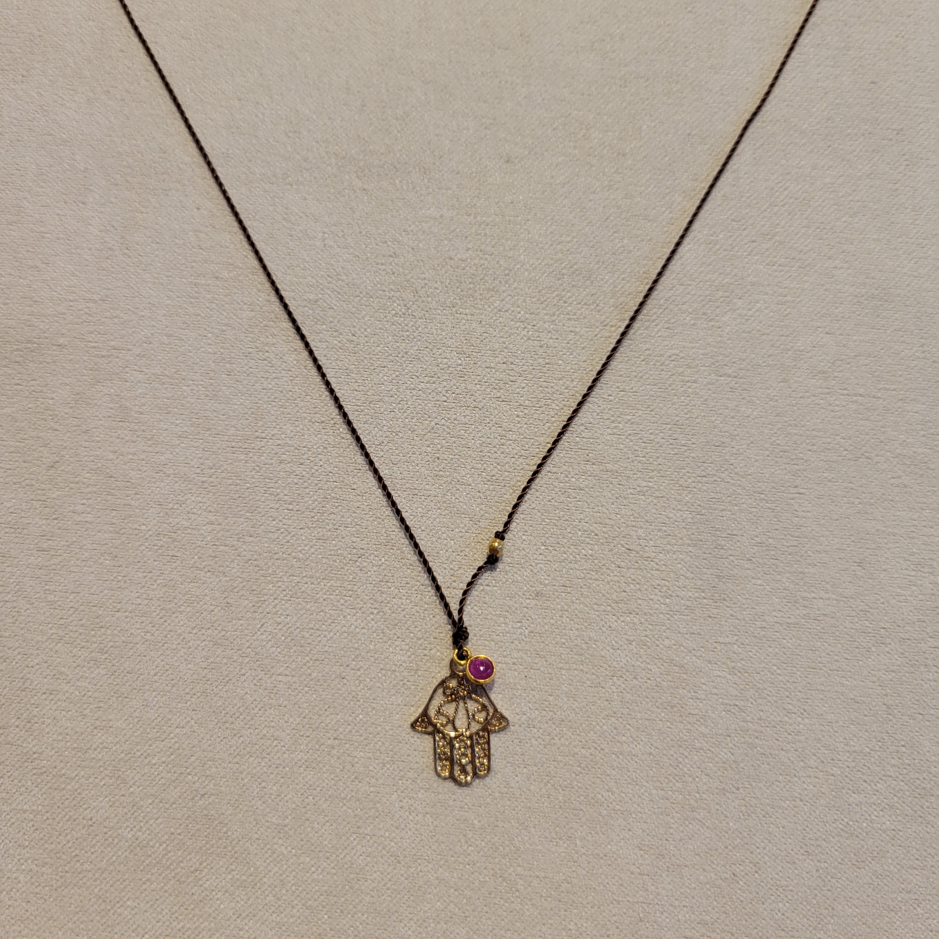 14k Hamsa Necklace with Ruby Charm