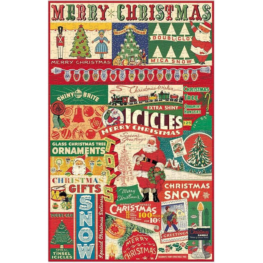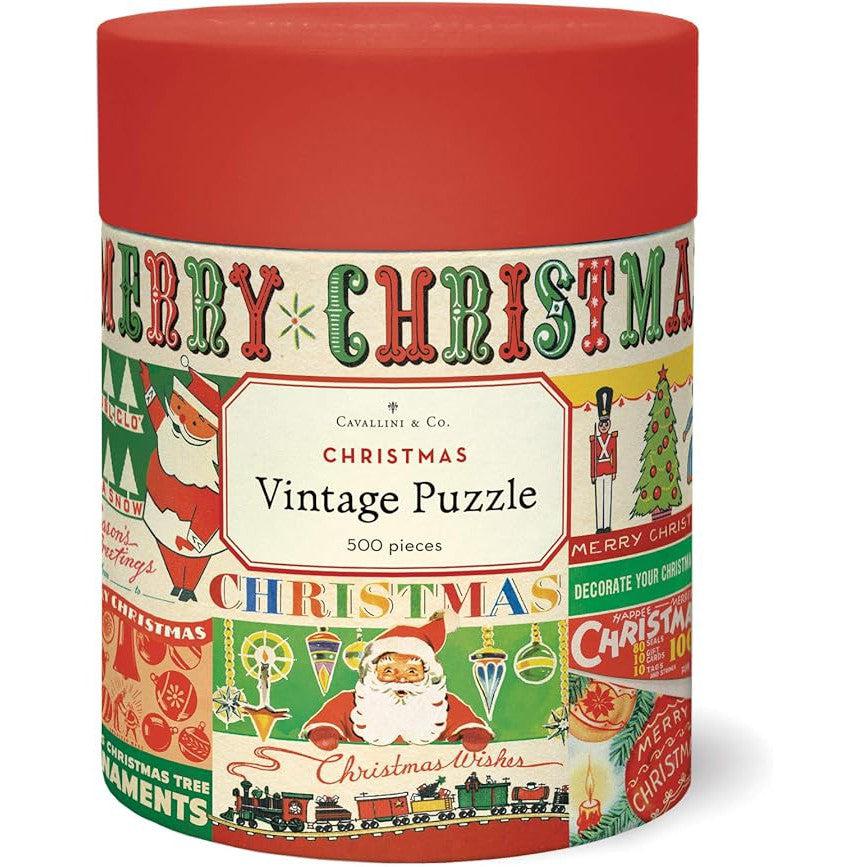 Cavallini's 500 piece puzzles are packaged in a 6.5 inch long cardboard tube, with puzzle pieces safely stored in a muslin bag inside. Finished puzzle measures 14 by 22 inches.