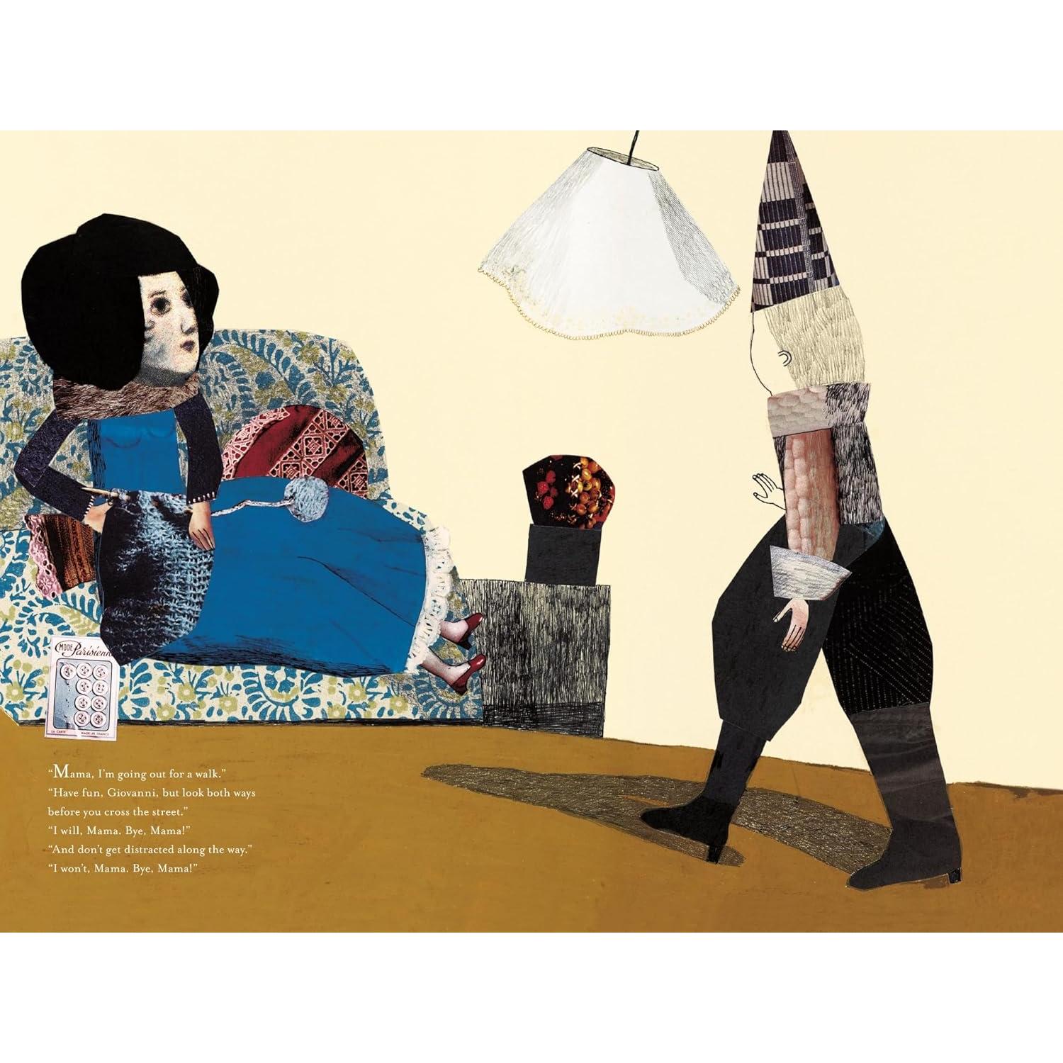 Little Giovanni is always daydreaming, always paying attention to the small miracles that lead him to lose track of the big picture. So even though he’s promised his mama to keep his eyes open on his walk, he can’t help but get distracted. Cheerful, carefree, and curious, Giovanni literally loses himself as he discovers the wide, wonderful world around him. Here, Rodari highlights the gorgeous way children give themselves over to their attention to the world by having Giovanni lose parts of himself as he walks along. Should his mama worry? No! Because: “That’s just the way children are.”