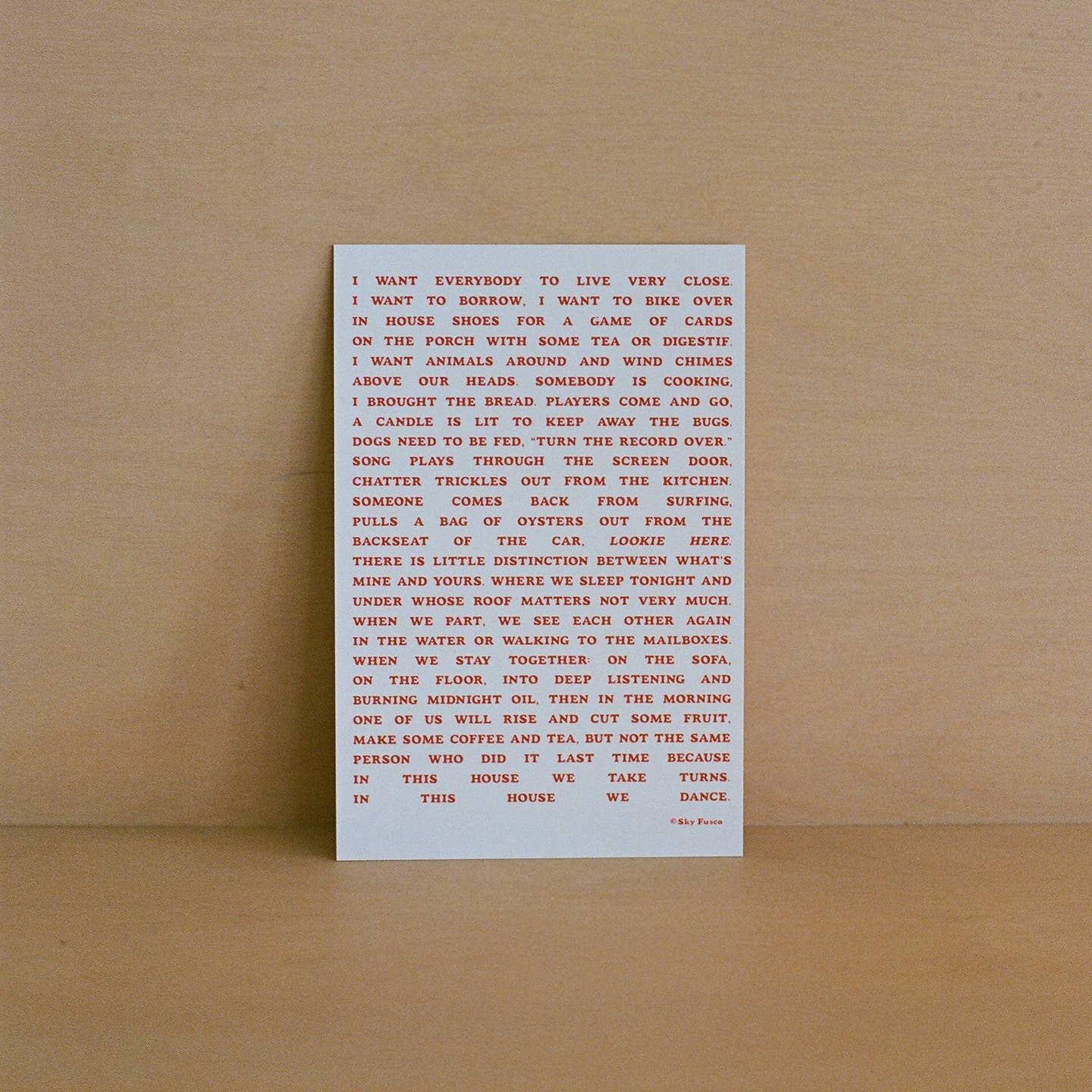 These postcards, each measuring 4” x 6” with a buttery smooth texture, are a creation of Sky Fusco. Known for her raw, strange, and quiet magic, she transforms desert skies, vintage patterns, and overlooked moments into stunning visual narratives. These postcards are more than just stationery, they're perfect for gallery walls, camper vans, or altar spaces.