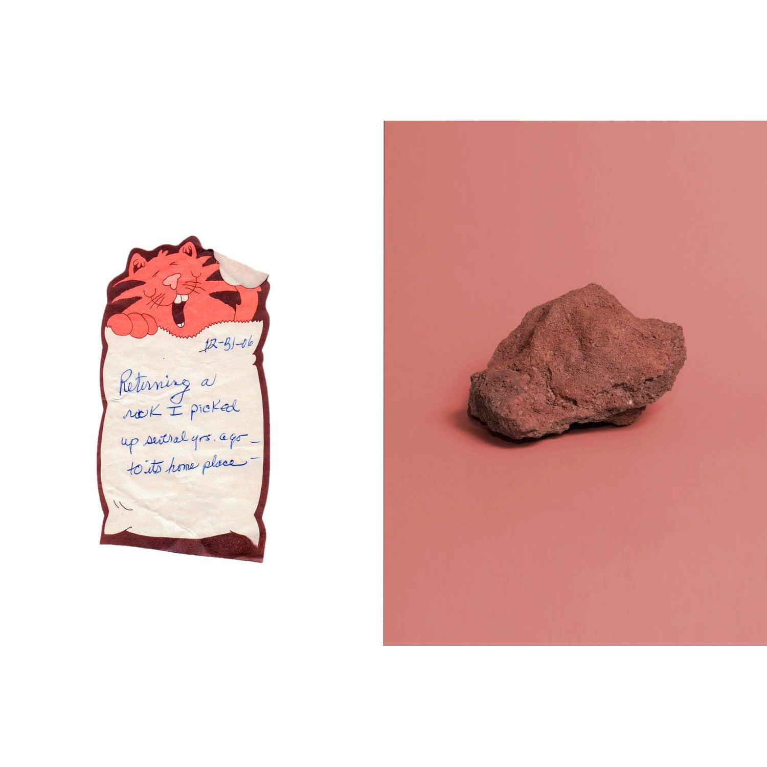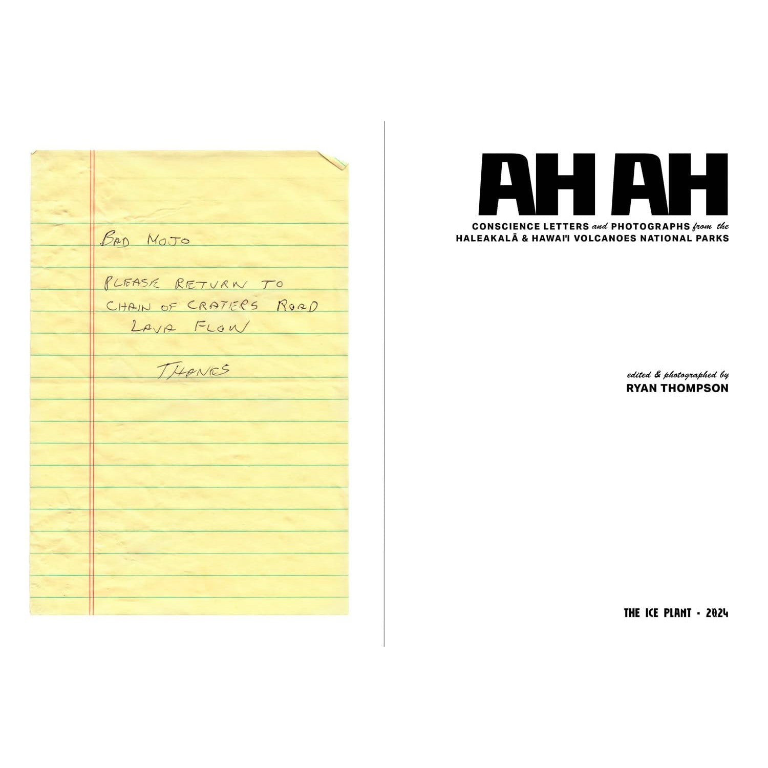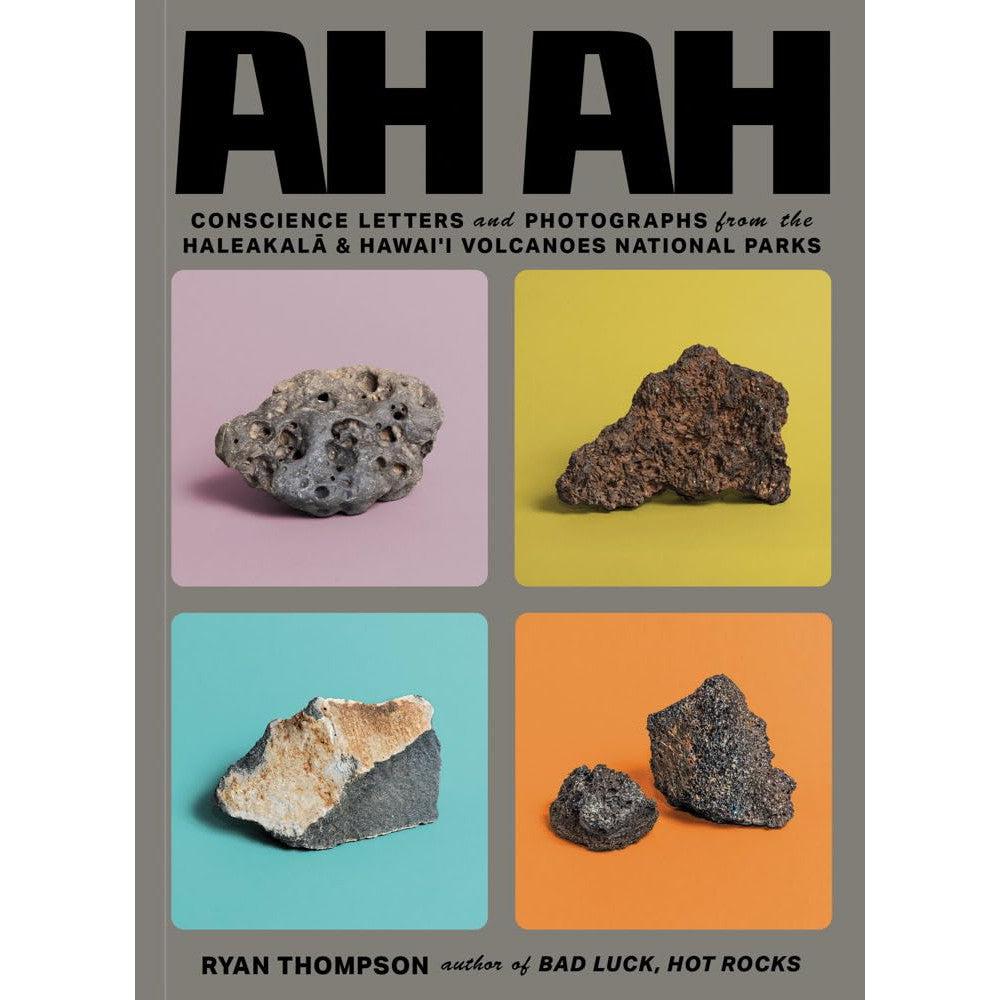 Following a trail of regret from the Petrified Forest (the subject of his classic Bad Luck, Hot Rocks) to the islands of Maui and Hawai‘i, artist and educator Ryan Thompson considers the implications of another trove of handwritten apologies, this time from the archives of the Haleakala and Hawai‘i Volcanoes National Parks. Written to accompany chunks of volcanic rock and other objects that tourists have pilfered from the Islands and subsequently returned (because of bad luck or bad conscience), the notes and letters express not only a need for forgiveness but also an awareness of the writers’ relationship to the Hawaiian landscape, and perhaps also to earth itself―a taking-and-returning phenomenon that (as noted in his earlier book) is its own form of absolution and self-help. Ah Ah weaves together Thompson’s own black-and-white travelog with vibrantly colored “portraits” of the returned specimens and facsimiles of selected letters into an endearing reflection on humanity’s troubling (but hopeful) entanglement with geology, colonialism and tourism in the Anthropocene.