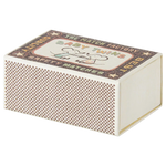 The box is made of cardboard and measures 4.5" by 3.2" by 2"