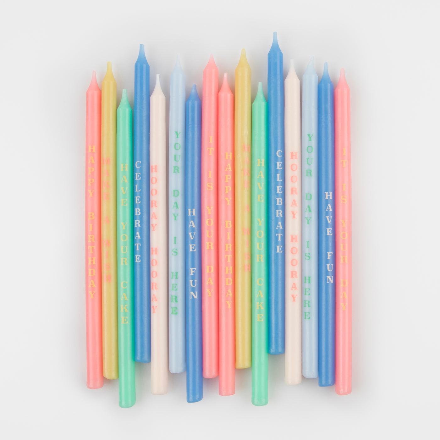 Not only will these candles add a pop of color to your birthday cake or large cupcakes, but they feature fun phrases to delight the special birthday boy or girl too. A super way to set the birthday mood.