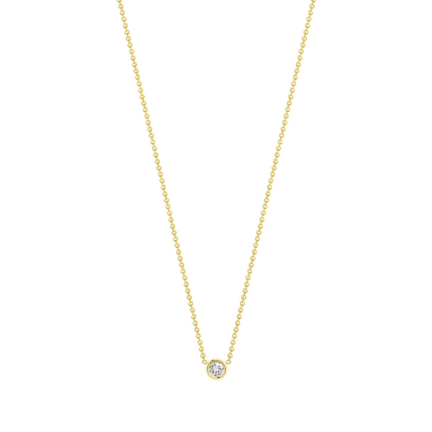 This solitaire diamond necklace is made to be worn and enjoyed daily. Comes on a 16" gold chain.