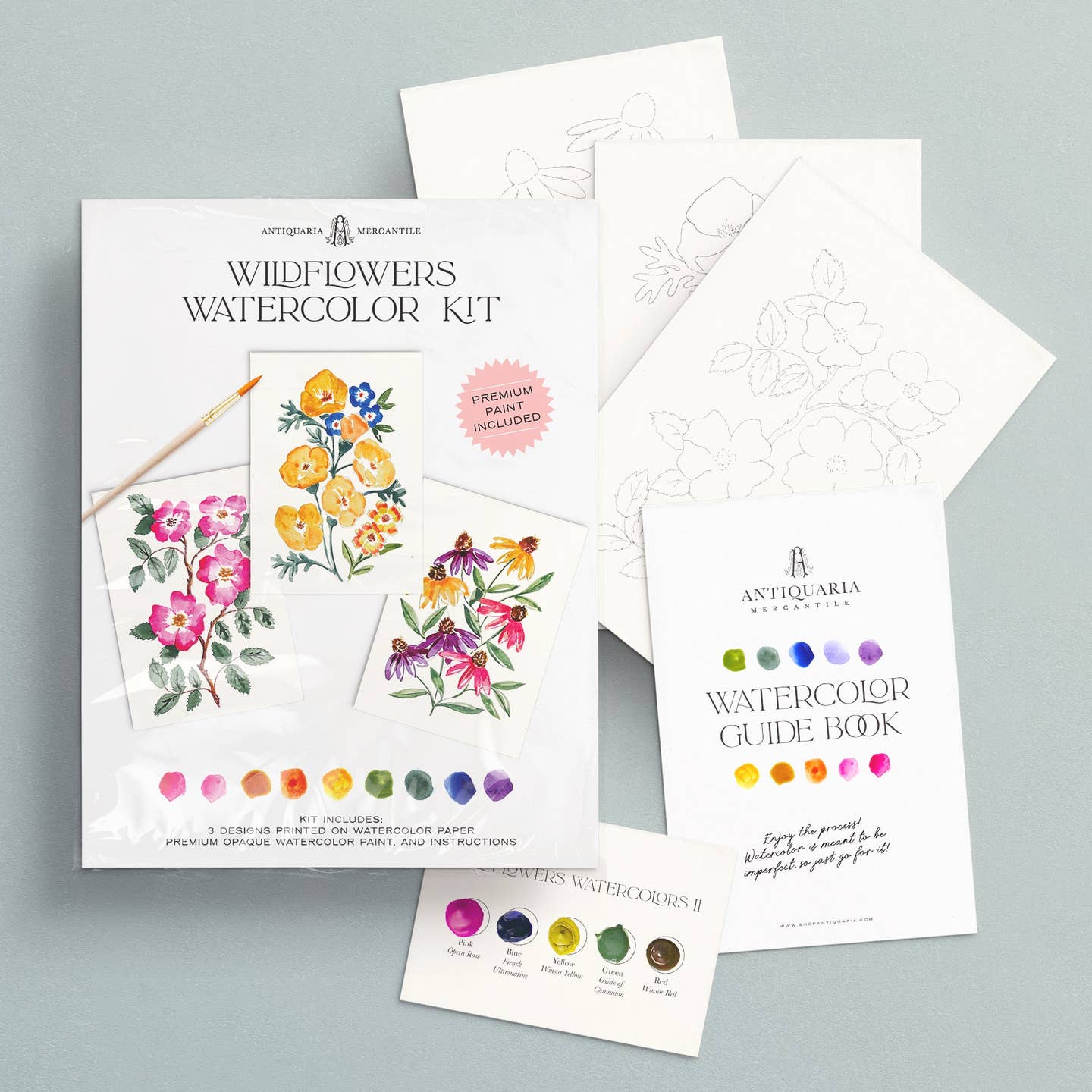 • 3 pre-drawn wildflower watercolor designs: Roses, California Poppies and Cone Flowers printed on Thick watercolor paper for professional-quality results